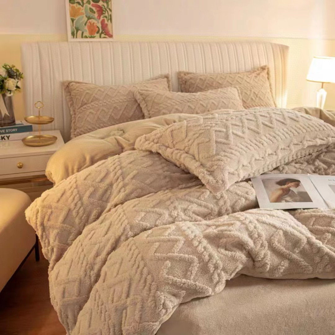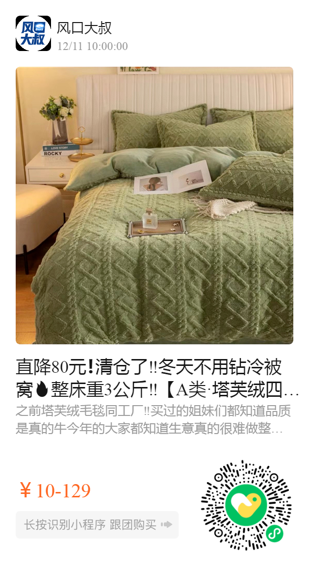 直降80元❗清仓了‼️冬天不用钻冷被窝整床重3公斤‼️【A类·塔芙绒四件套】加绒加厚✔️黑科技3秒速暖连电热毯都省了❗ 不掉毛✔️不起球✔️无静电✔️ ️面芙塔蓉立提体花工艺 ️面亲细肤腻宝绒宝面料 🉑可以机洗,更省心