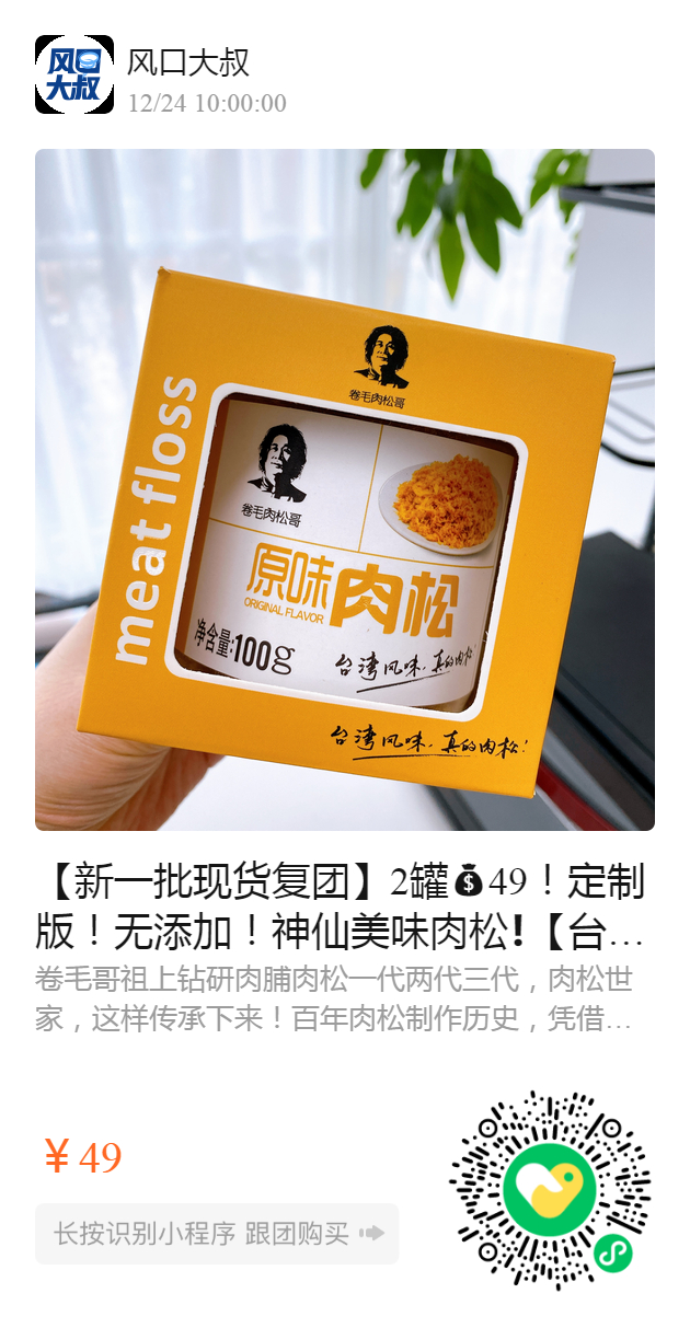 【新一批现货复团】2罐49!定制版!无添加!神仙美味肉松❗️【台湾老字号——卷毛哥】3代人匠心传承的顶级肉松100g/罐,记忆里古早好味道!