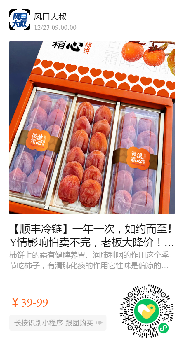 柿饼零下18度冷冻保存可放6个月,时间越久糖霜越多,礼盒➕礼袋!