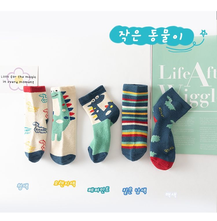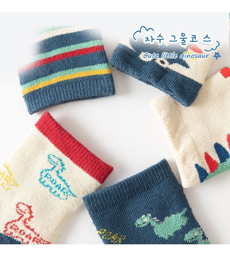 【5双】儿童袜子加绒加厚毛圈袜冬季保暖中筒袜男童厚底防寒袜子