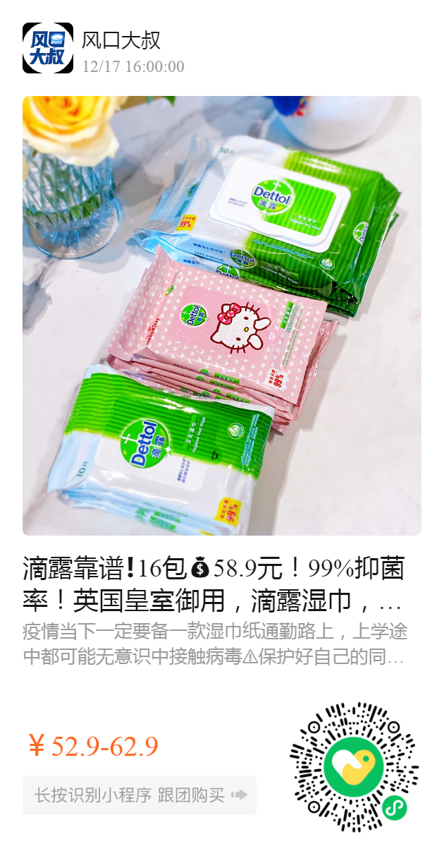 滴露靠谱❗️16包58.9元!99%抑菌率!英国皇室御用,滴露湿巾,温和杀菌,勤擦手,还有hellokitty限定版!