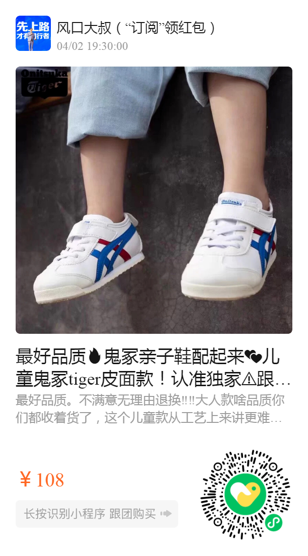 最好品质鬼冢亲子鞋配起来💕儿童鬼冢tiger皮面款!认准独家️跟咱家大人款同一货源!