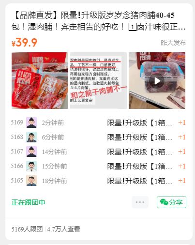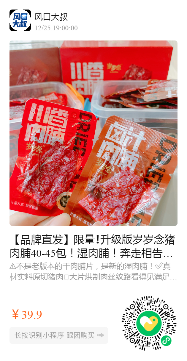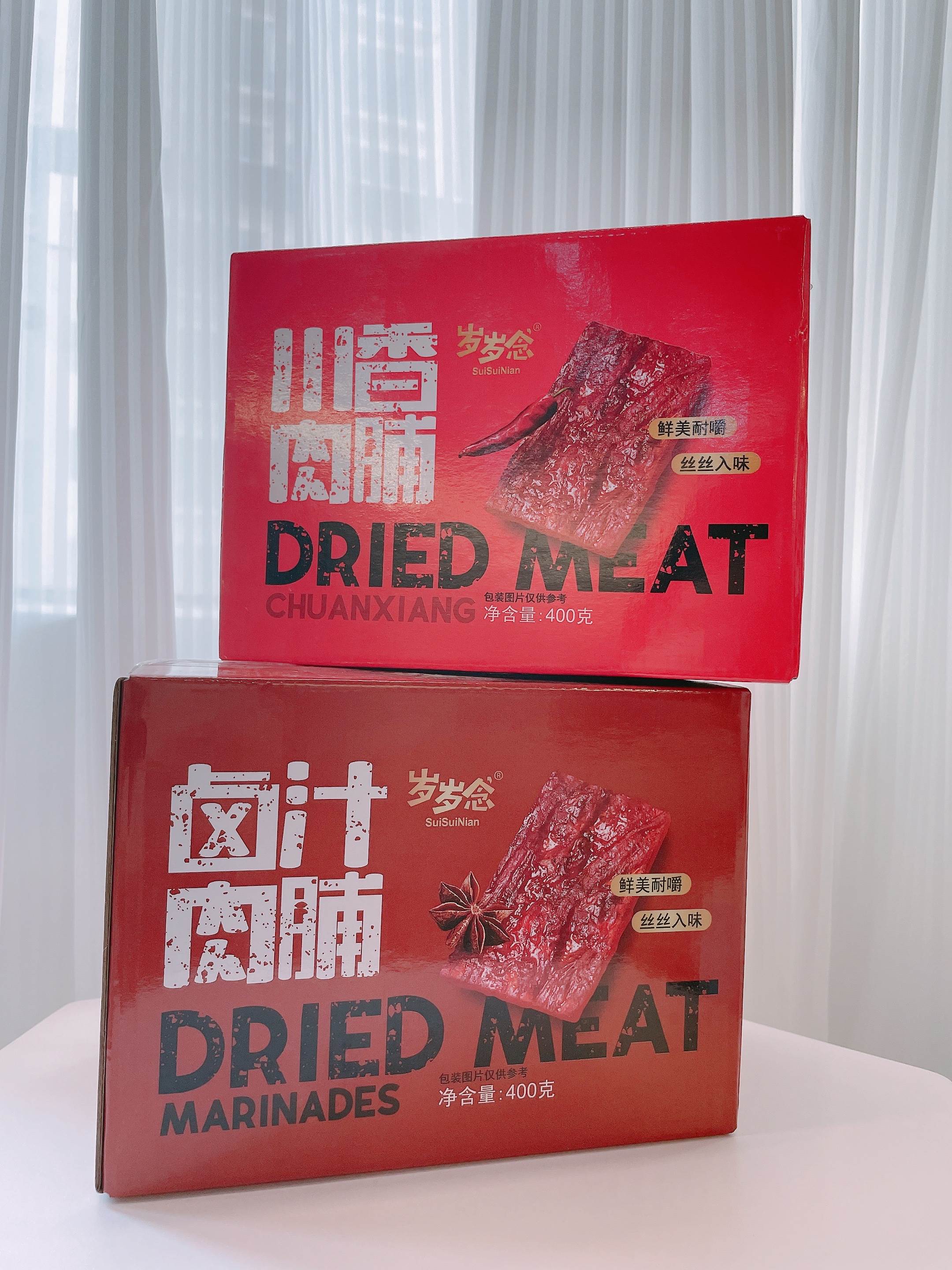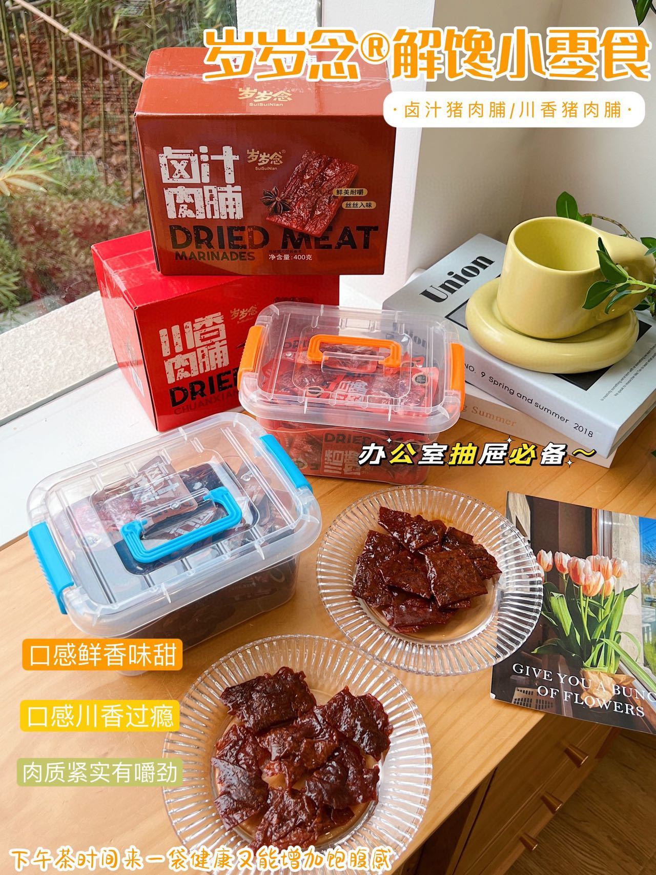 【品牌直发】限量❗️升级版岁岁念猪肉脯40-45包!湿肉脯!奔走相告的好吃! 1️⃣卤汁味很正宗2️⃣川香味够带劲! 肉食控心中的NO.1,肉量多到惊人,不得不爱! 团购39.9带走一大箱400g!吃完还可以做收纳盒,2022.11新日期!