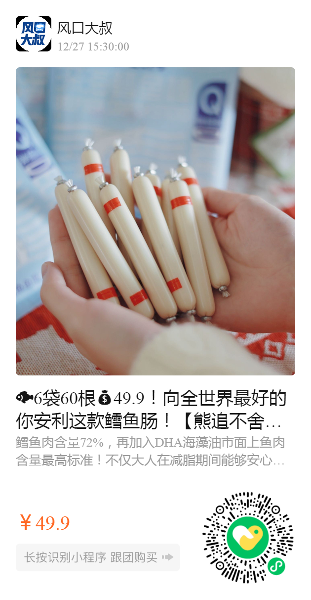 6袋60根49.9!向全世界最好的你安利这款鳕鱼肠!【熊追不舍深海鳕鱼肠】鳕鱼含量≥72%,双重DHA海藻油!甄选深海鳕鱼,味道甜美,营养丰富🐋 不含变性淀粉、不含乳化剂、色素! 独立包装,深受减脂、宝妈群体的喜爱! 新日期!