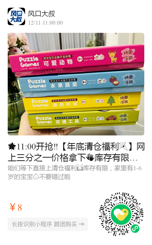 11:00开抢‼️【年底清仓福利】网上三分之一价格拿下库存有限,闭眼入‼️ 来自【青岛社&海润阳光】,每款32块高品质大块拼图🧩,认知+双语学习,还能水显涂鸦,太绝啦 适合1-6岁