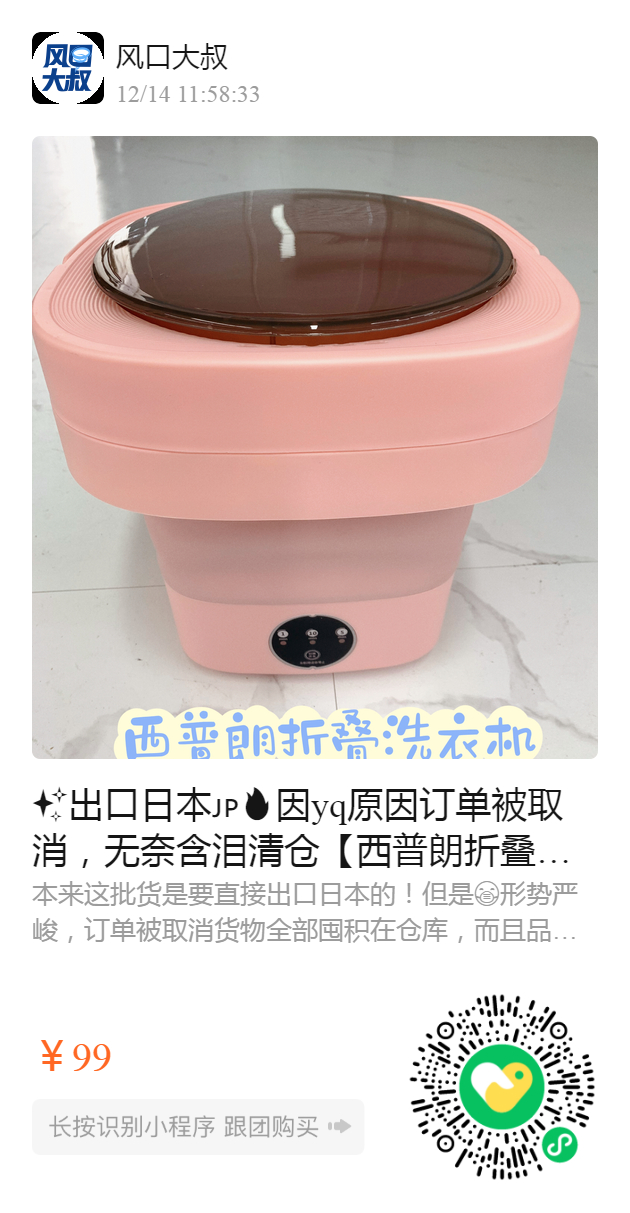 出口日本因yq原因订单被取消,无奈含泪清仓【西普朗折叠洗衣机】天猫199,团购99直接带走!!