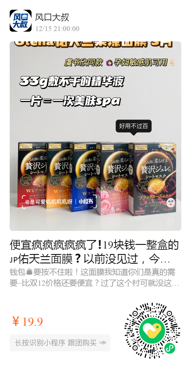 便宜疯疯疯疯疯了❗️19块钱一整盒的佑天兰面膜❓以前没见过,今天见到了❗️