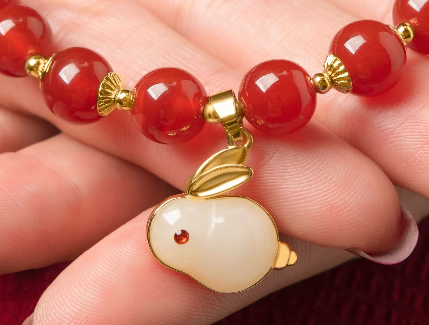 产品名称:天然玛瑙手链超全款式玉兔红绳手链