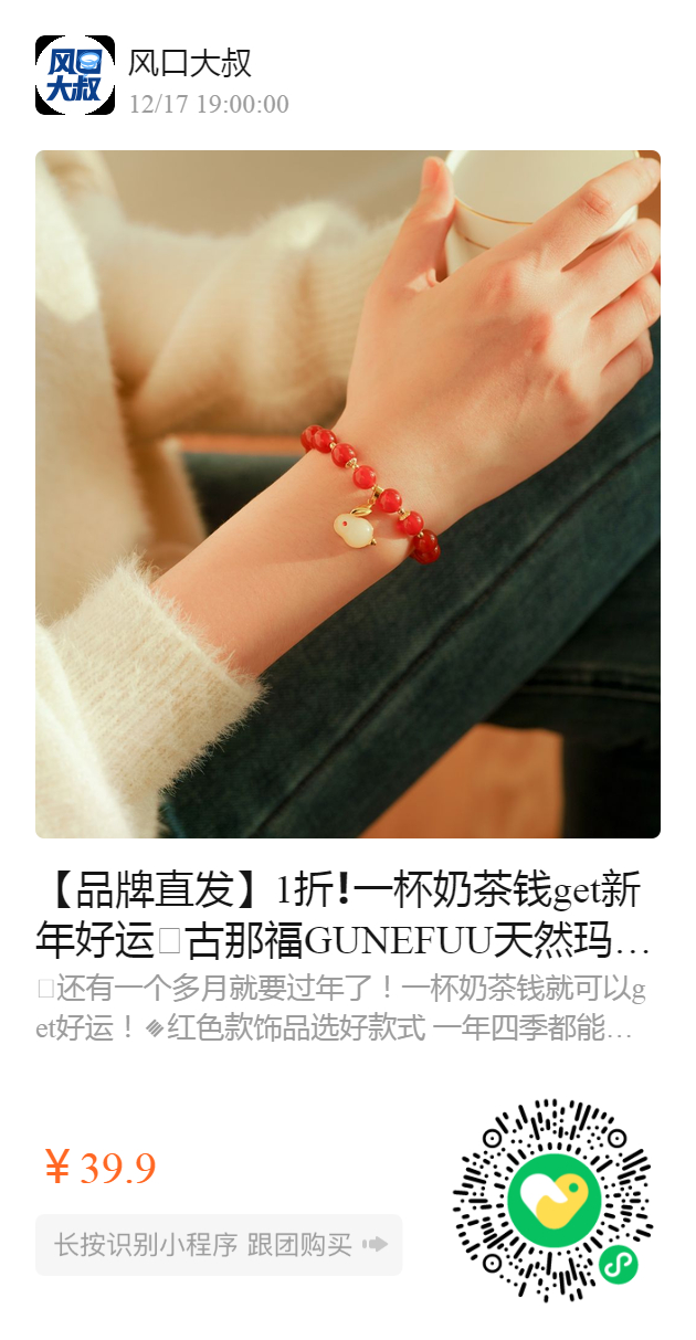 【品牌直发】1折❗️一杯奶茶钱get新年好运🧧古那福GUNEFUU天然玛瑙手链超全款式玉兔红绳手链,寓意好彩头,祈福转运又招财❗️