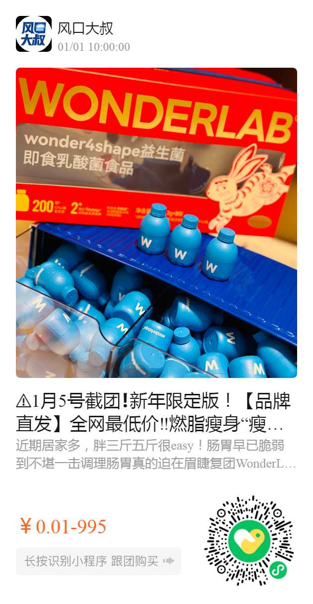 ️1月5号截团❗️新年限定版!【品牌直发】全网最低价‼️燃脂瘦身“瘦子菌”【wonderlab B420益生菌】买30颗再送3盒阻断片!60颗多送小水杯!150颗大胖瓶送30颗再送美妆箱‼️
