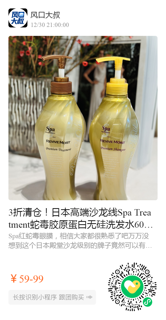 3折清仓!日本高端沙龙线Spa Treatment蛇毒胶原蛋白无硅洗发水600ml➕护发素600ml,脱发、油头有救了!