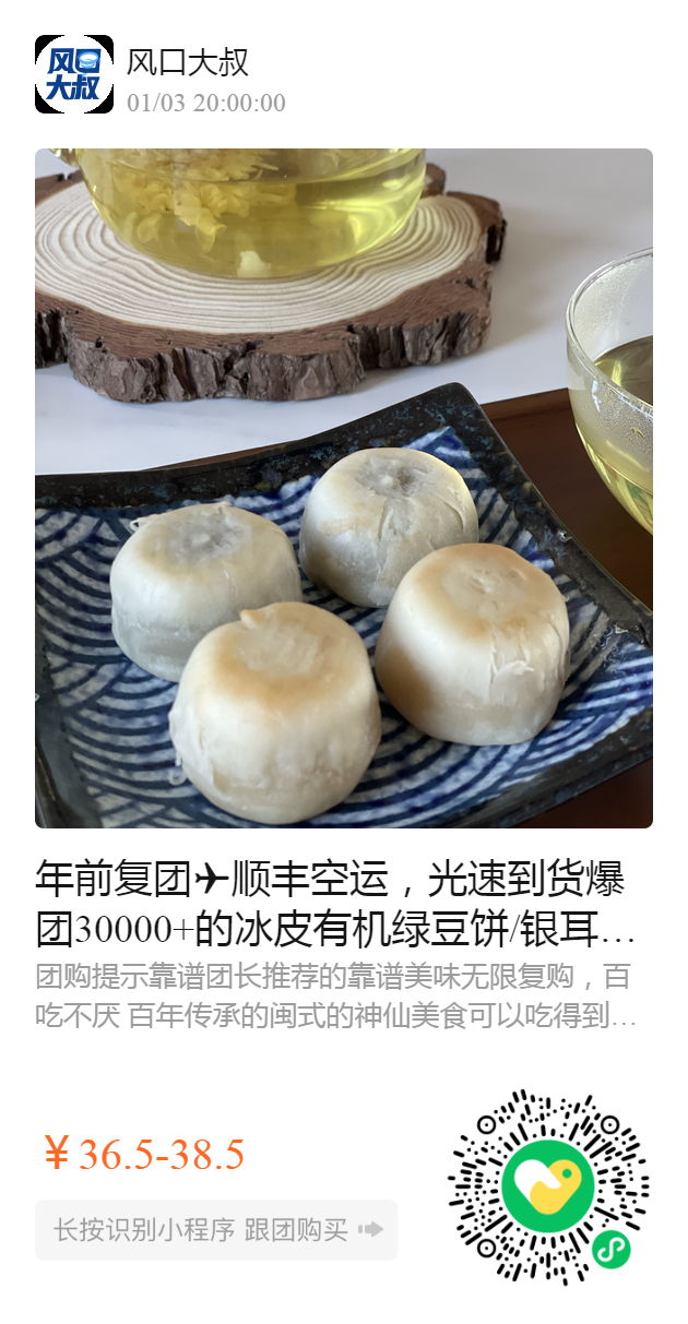 爆团30000+的冰皮有机绿豆饼/银耳莲子饼。
