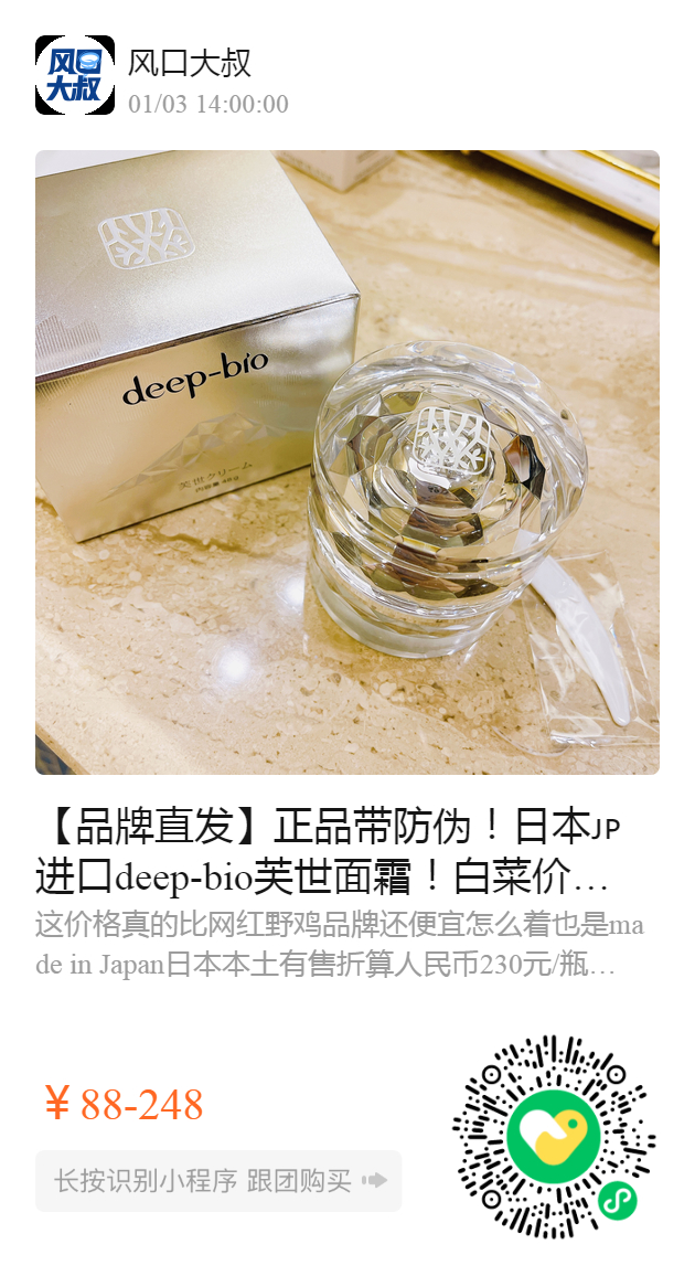 【品牌直发】正品带防伪!日本进口deep-bio芙世面霜!白菜价贵妇品质!日本生产,同步在售!