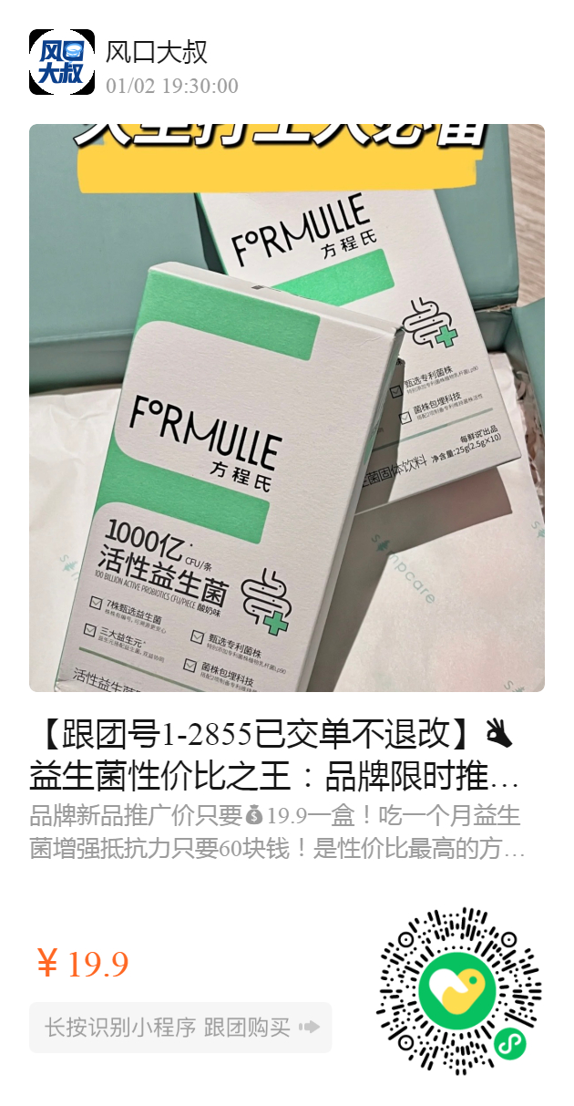 【跟团号1-2855已交单不退改】益生菌性价比之王:品牌限时推广,不涨价️一天一条1块9