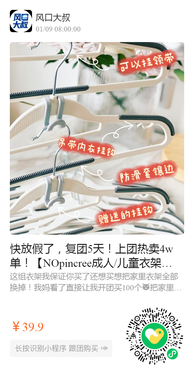 快放假了,复团5天!上团热卖4w单!【NOpincree成人/儿童衣架】品牌直发!我妈让我买100个!20个39.9元!山姆/亚马逊在售干湿两用晾晒无痕塑料超防滑衣架!美国Costco、Kmart在售~