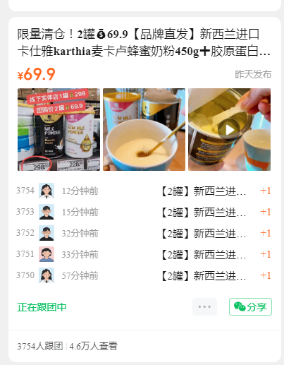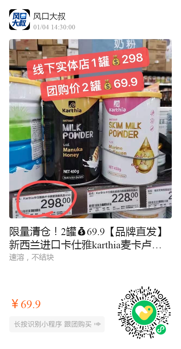 限量清仓!2罐69.9【品牌直发】新西兰进口卡仕雅karthia麦卡卢蜂蜜奶粉450g➕胶原蛋白奶粉450g!