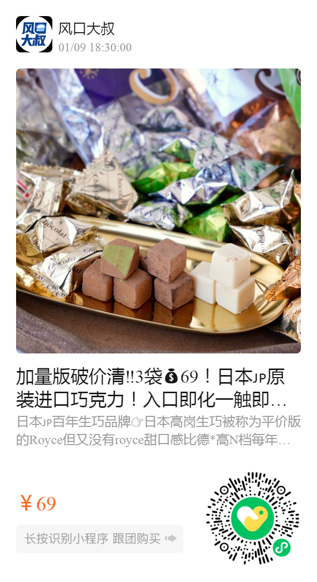 加量版破价清‼️3袋69!日本原装进口巧克力!入口即化一触即溶【日本高岗生巧克力】