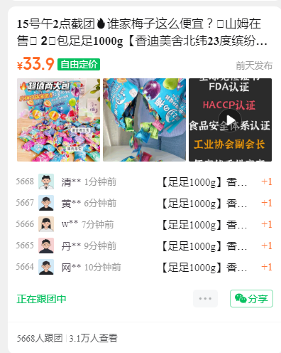 15号午2点截团谁家梅子这么便宜?🧧山姆在售🤩 ️包足足1000g【香迪美舍北纬23度缤纷彩虹梅】山姆59元/包,我们33.9元/2包