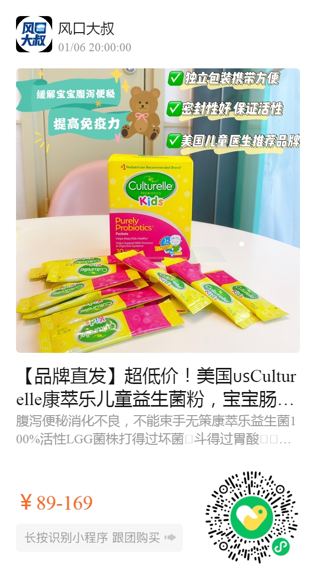 【品牌直发】超低价!美国Culturelle康萃乐儿童益生菌粉,宝宝肠胃重中之重,北京儿科医生崔玉涛特别推荐,美国销量第一!