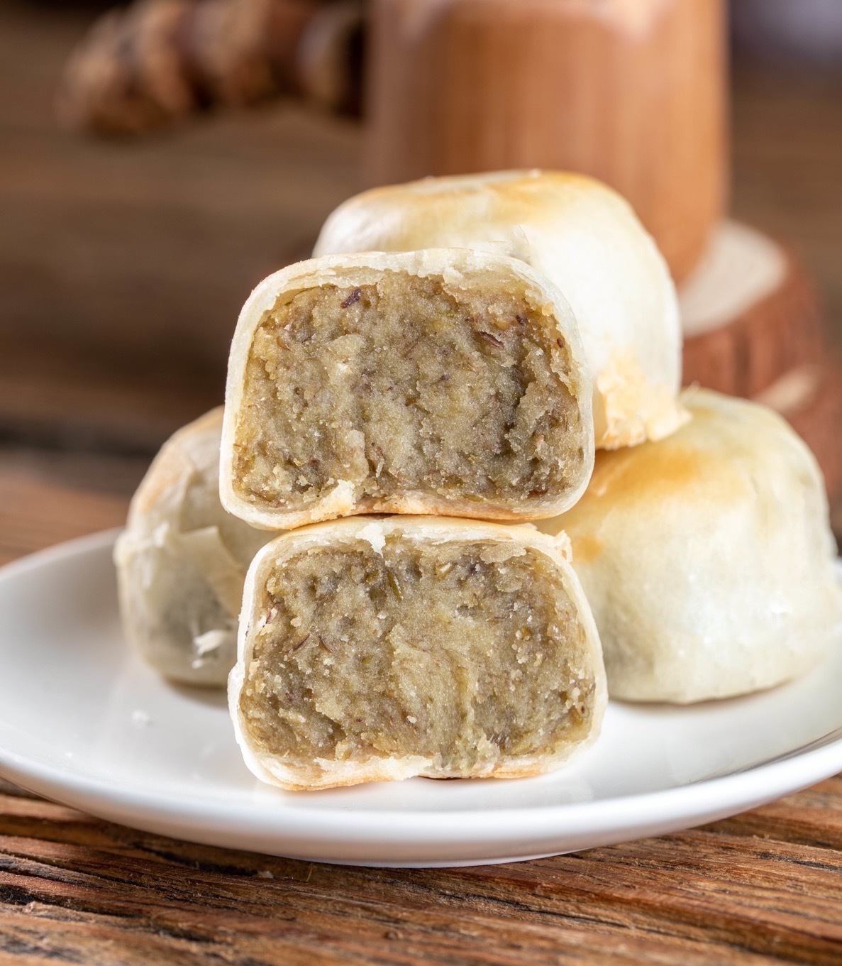 原味|莲子银耳|芋相莲三种口味💌皮薄馅多软软的皮清甜的绿豆馅解馋不腻吃一口就爱上❗️银耳莲子我觉得是最好吃的,一盒秒光光