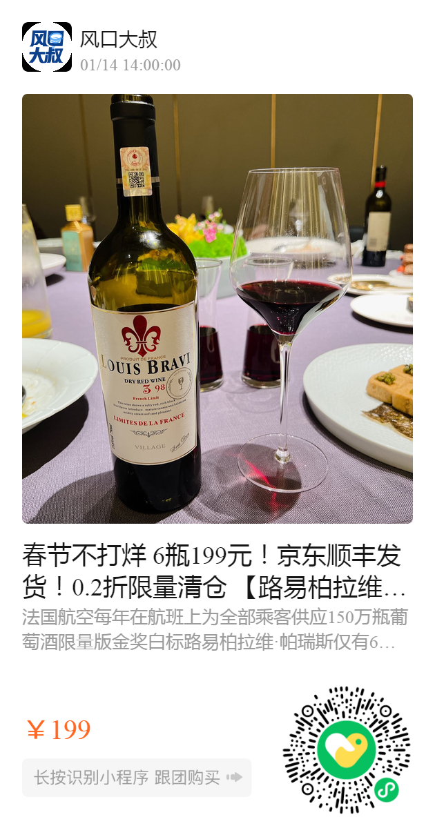 法国航空头等舱全航线酒水单专用红酒,专柜1588元一瓶!正品带防伪