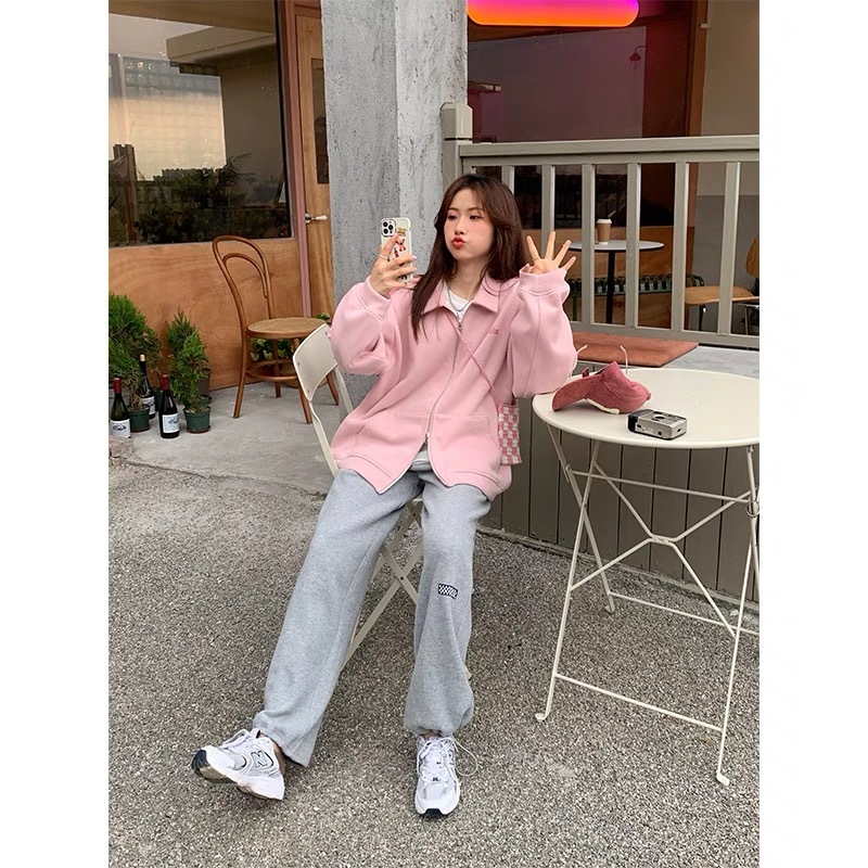 「柒」晚7点!仅此一批!实拍!质量好!青岛高品质!运动风休闲外套2022春季新款宽松慵懒风拉链卫衣,字母印花+拼色织带 简单又好看!休闲随性又时髦!