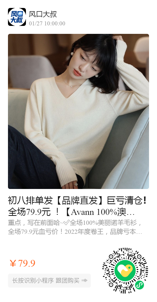 初八排单发【品牌直发】巨亏清仓❗️全场79.9元 !【Avann 100%澳洲美丽诺羊毛衫】快点喊你七姑八姨一起来薅“羊毛中的羊毛!”