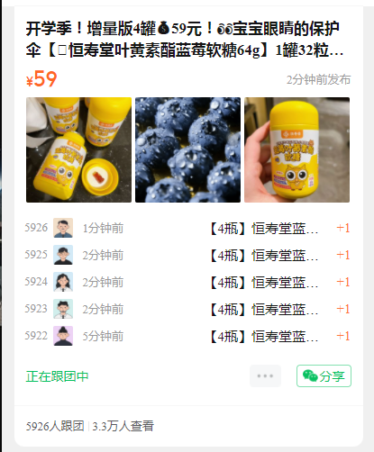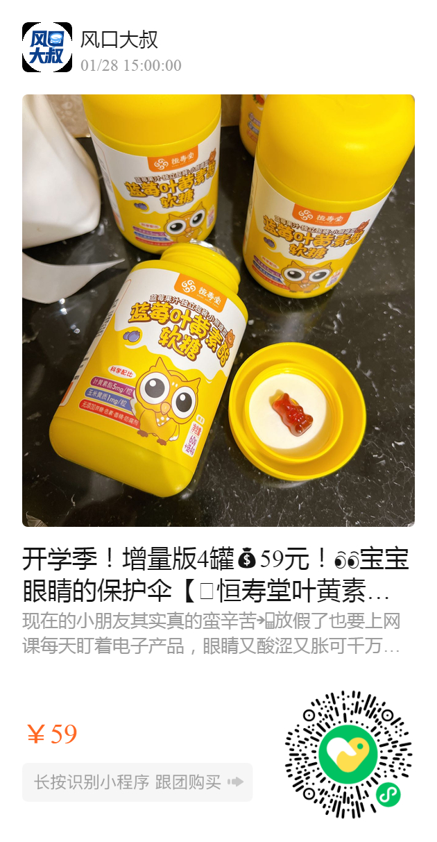 开学季!增量版4罐59元!宝宝眼睛的保护伞【🫐恒寿堂叶黄素酯蓝莓软糖64g】1罐32粒!旗舰店1罐79元!