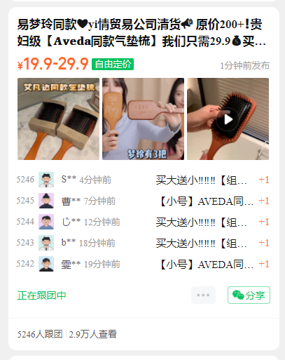 易梦玲同款yi情贸易公司清货 原价200+❗️贵妇级【𝐀𝐯𝐞𝐝𝐚同款气垫梳】我们只需29.9买大送小‼️2秒征服头皮雅诗兰黛旗下品牌白富美姐妹必备精致气垫梳! 🔹伸展式刷毛,刺激按摩头皮,有效防止脱发 🔹防静电,抚平毛躁,头发打结say byebye