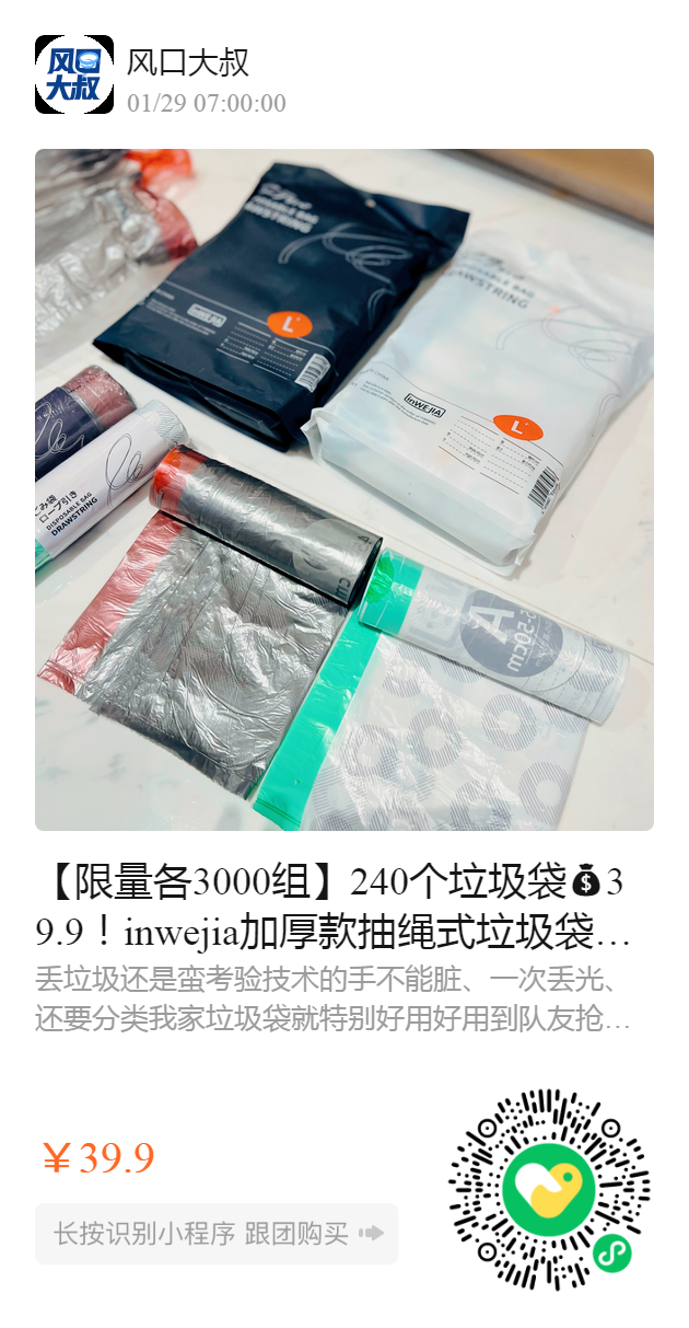 【限量各3000组】240个垃圾袋39.9!inwejia加厚款抽绳式垃圾袋!这个垃圾袋太牛了,收拾垃圾不脏手!
