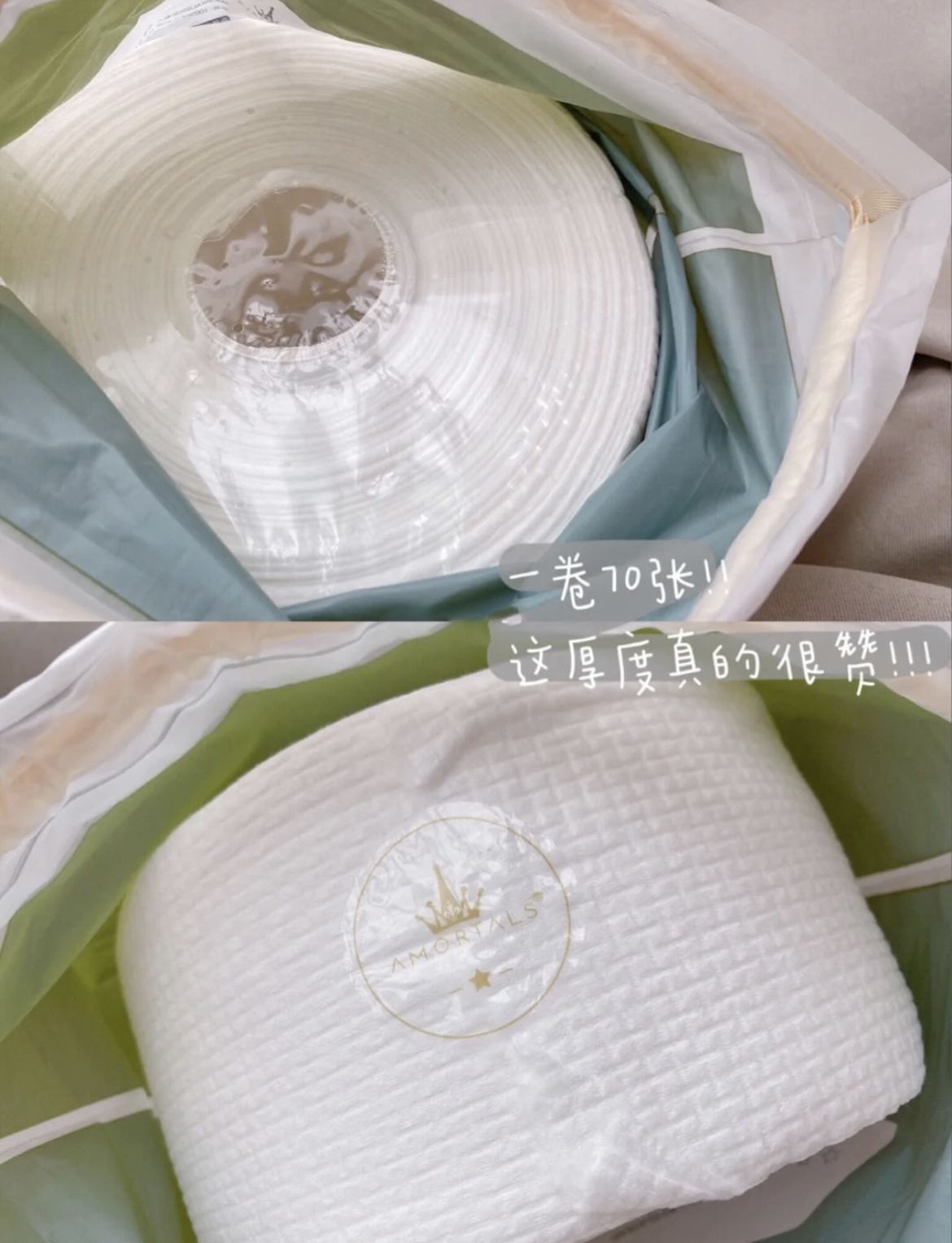 ️认准这个纹理,不是便宜的珍珠原点版本,我们的又大又厚又柔软,不掉絮耐撕扯❗比市面上别的洗脸巾克重增加了66%重磅用料!提升柔软度和吸水性,一次性的感受也要照顾到!不添加荧光剂,漂白剂~