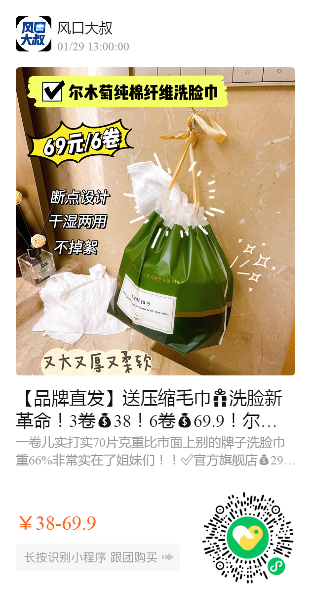 【品牌直发】送压缩毛巾洗脸新革命!3卷38!6卷69.9!尔木萄纯棉纤维洗脸巾(一卷70张),巨划算!