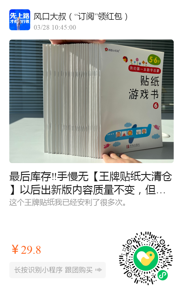 最后库存‼️手慢无【王牌贴纸大清仓】 以后出新版内容质量不变,但是别想这个价格了 这是一套把数学和贴纸完美融合的贴纸,火爆妈妈圈——正版邦臣小红花《我的第一本数学启蒙贴纸游戏书》这次购买全套预计可省下40元。