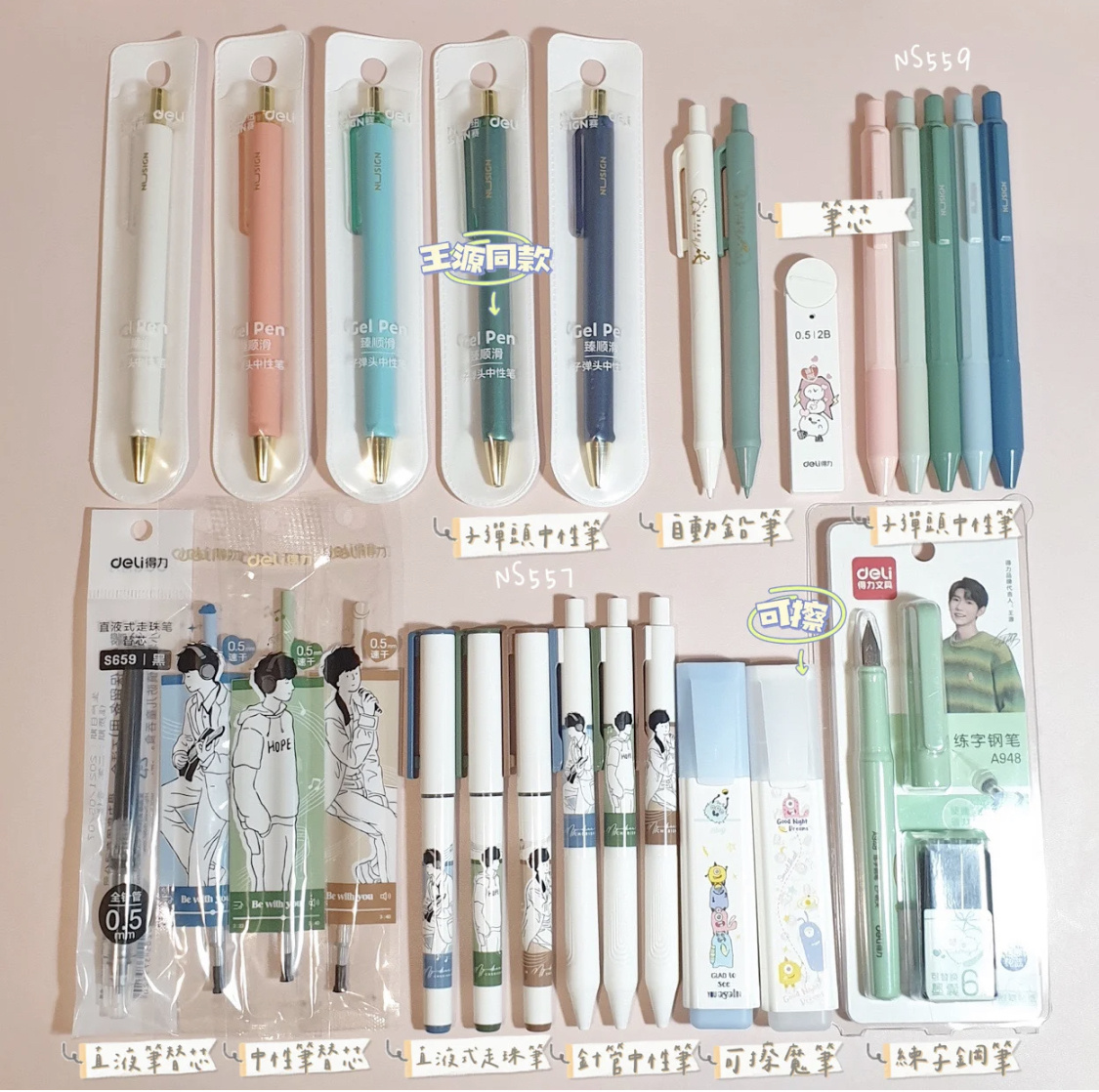 ✅铅笔、橡皮擦、圆珠笔、中性笔