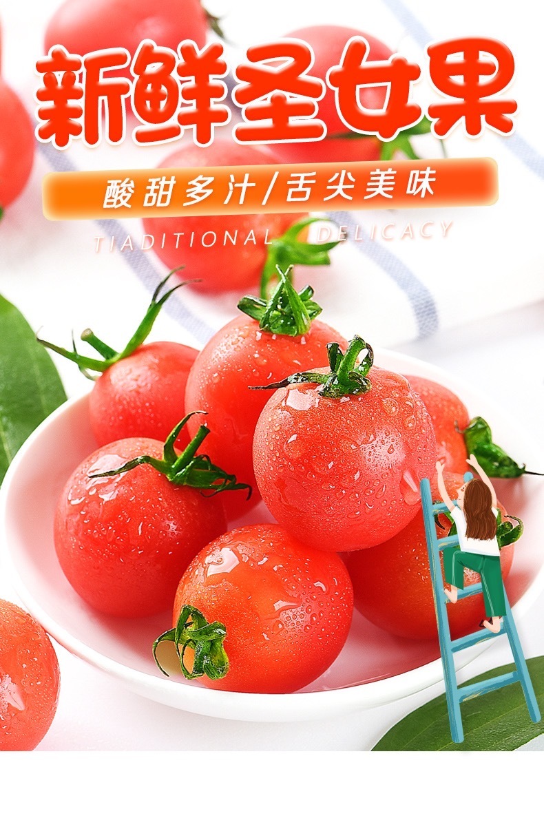 不催熟不打药放心吃!番茄味浓郁皮薄一口爆汁 果肉结实!口感脆甜糖度高达9-11度🉑️2:8酸甜比,维生素c是更是普通圣女果的1.7倍,是果蔬之首.
