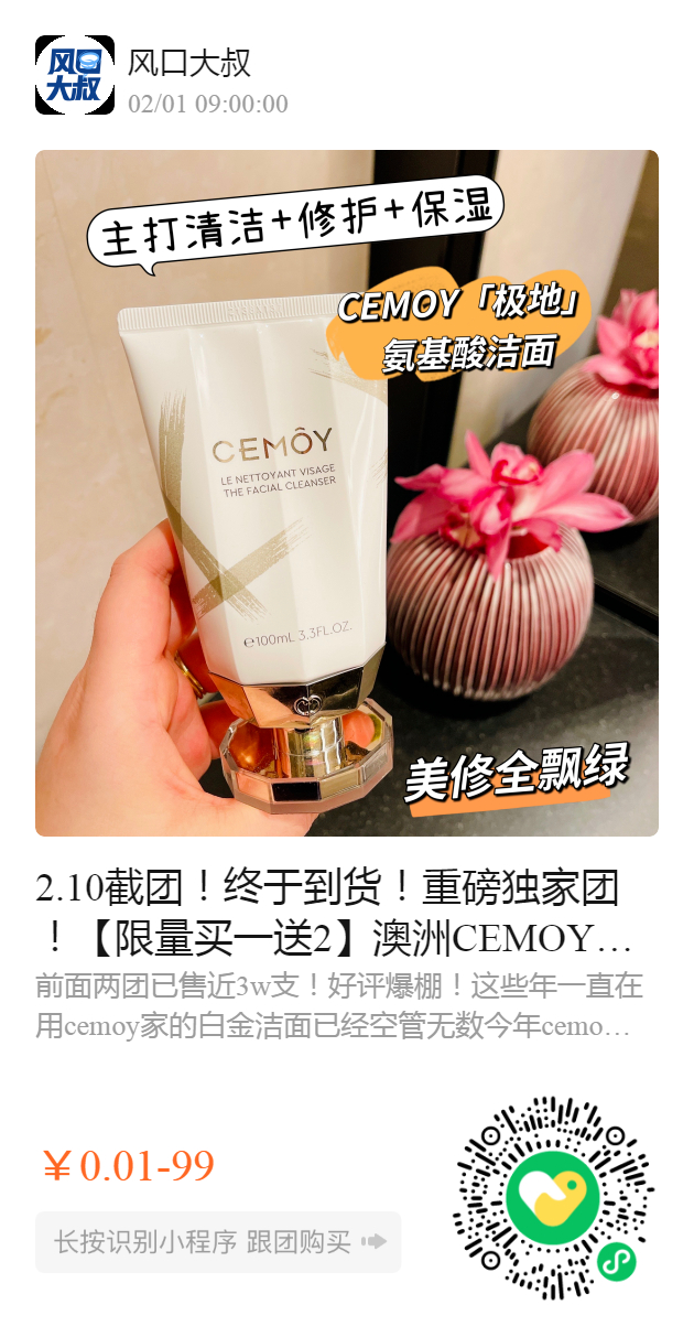 2.10截团!终于到货!重磅独家团!【限量买一送2】澳洲CEMOY新品「极地」氨基酸洁面100ml!主打清洁➕修护➕保湿!