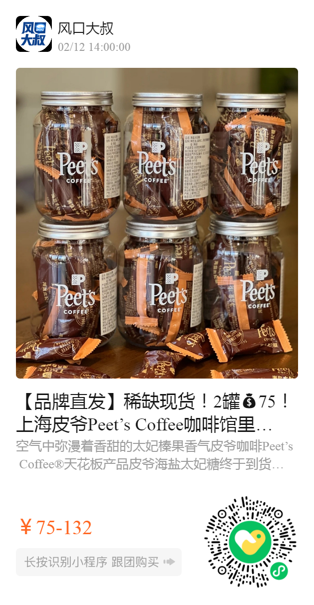 【品牌直发】稀缺现货!2罐75!上海皮爷Peet’s Coffee咖啡馆里的海盐太妃VS大神私藏精品皮爷Nespresso胶囊咖啡!