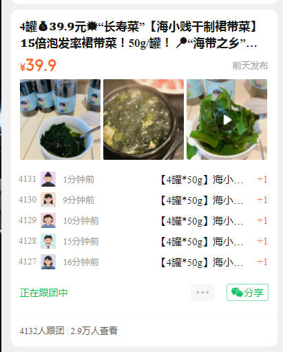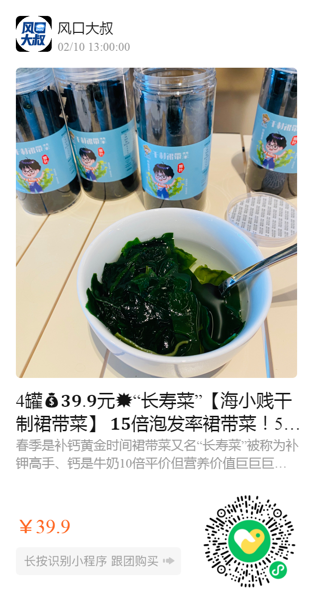 4罐𝟑𝟗.𝟗元💥“长寿菜”【海小贱干制裙带菜】 𝟏𝟓倍泡发率裙带菜!50g/罐!