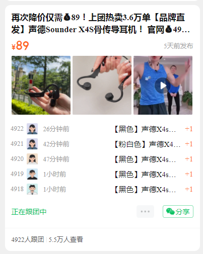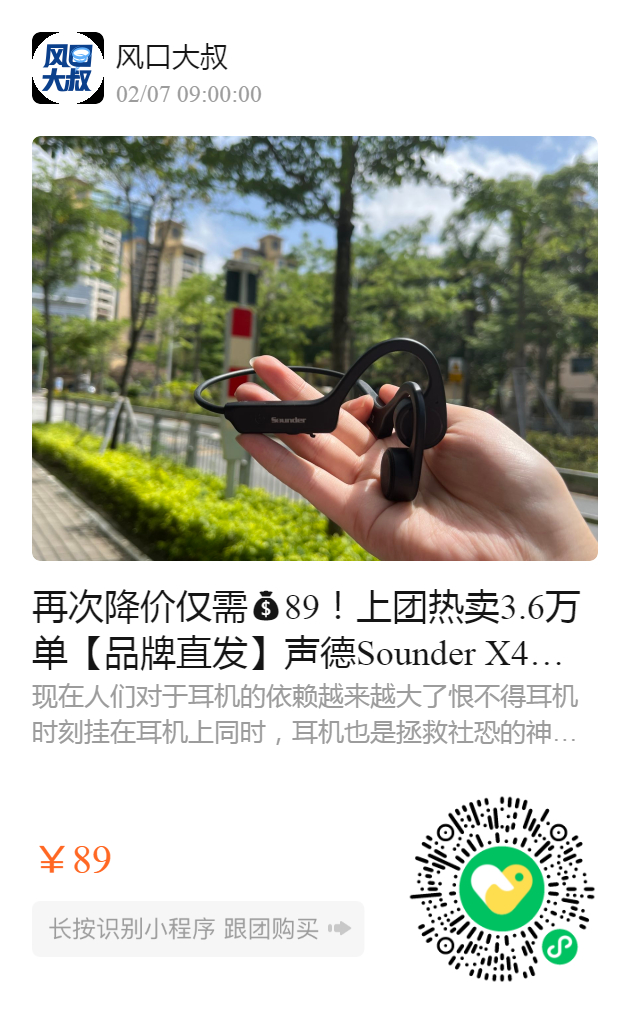 再次降价仅需89!上团热卖3.6万单【品牌直发】声德Sounder X4S骨传导耳机!