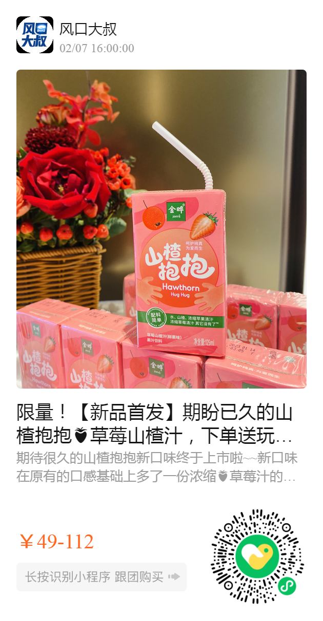 限量!【新品首发】期盼已久的山楂抱抱草莓山楂汁,下单送玩具回力车或者山楂棒棒糖