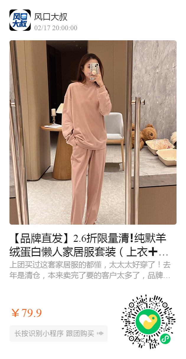 【品牌直发】2.6折限量清❗️纯默羊绒蛋白懒人家居服套装(上衣➕裤子),集颜值和舒适于一身!
