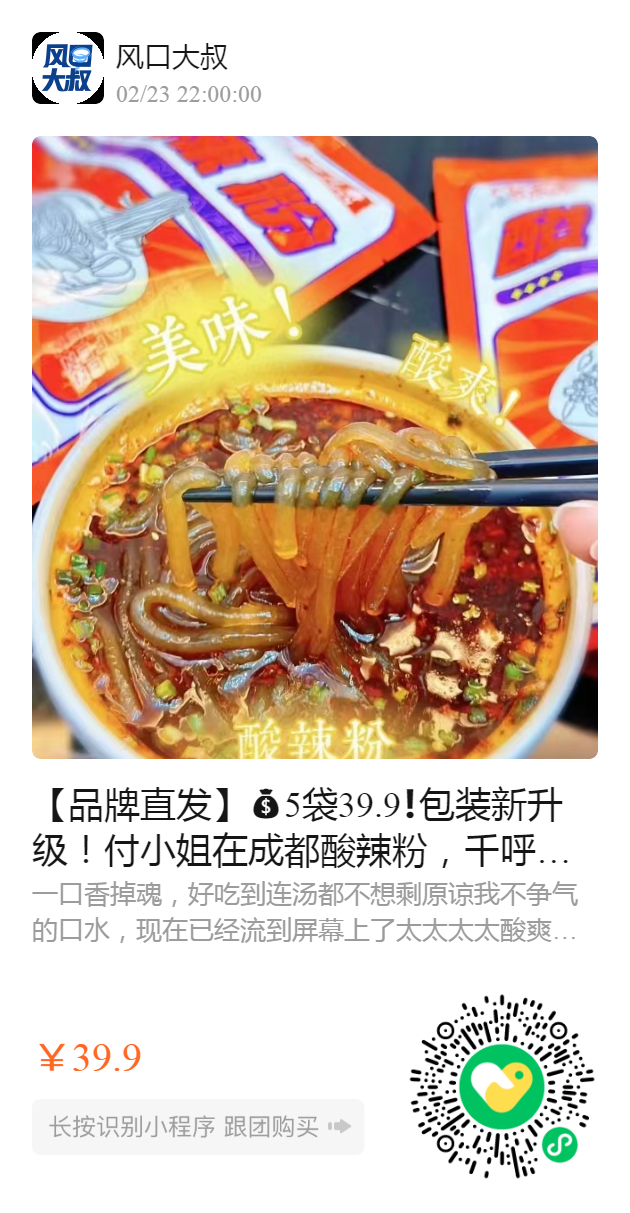 【品牌直发】5袋39.9❗️包装新升级!付小姐在成都酸辣粉,千呼万唤它来了!