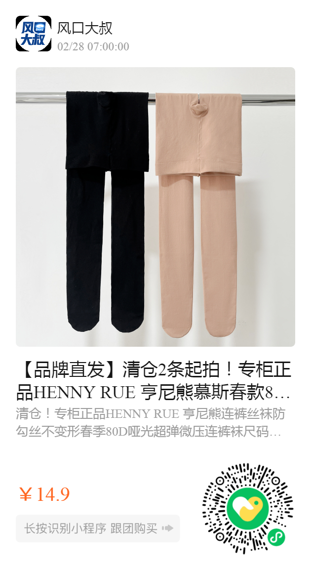【品牌直发】清仓2条起拍!专柜正品HENNY RUE 亨尼熊慕斯春款80D打底袜,闭眼入,品质超高! ✅Uv防护防晒,白嫩美腿不怕晒 ✅遮瑕均匀肤色,宛如开了磨皮 ✅微压显瘦分段压力,秒变漫画腿 18~25°c,80斤—150斤都可以穿,不掉档! 旗舰店一双59,清仓团14.9