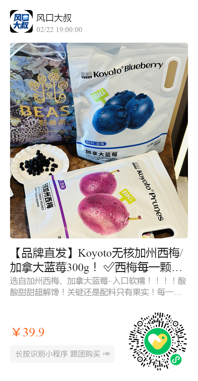 【品牌直发】Koyoto无核加州西梅/加拿大蓝莓300g!