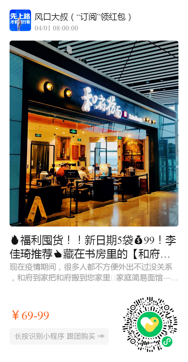 福利囤货!!新日期5袋99!李佳琦推荐藏在书房里的【和府捞面】!超级无敌好吃!!!和府到家让你在家也能品尝到店里的味道😋 这羊毛必须薅!汤底浓郁面条劲道,方便省时分量足✅ 5袋组合装,旗舰店169,我们只要99! 2022.2.9生产,保质期4个月,库存无补!