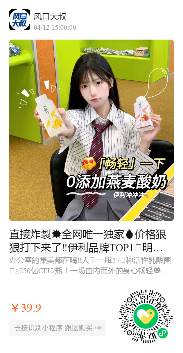 直接炸裂💥全网唯一独家价格狠狠打下来了‼️伊利品牌TOP明星产品「畅轻」独家补贴‼全网最低顺滑到心尖尖上的酸奶🤭
