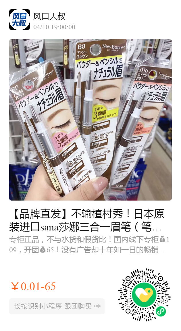 【品牌直发】不输植村秀!日本原装进口sana莎娜三合一眉笔(笔+粉+刷),限量0.01元换购化妆刷1把!李小璐推荐!