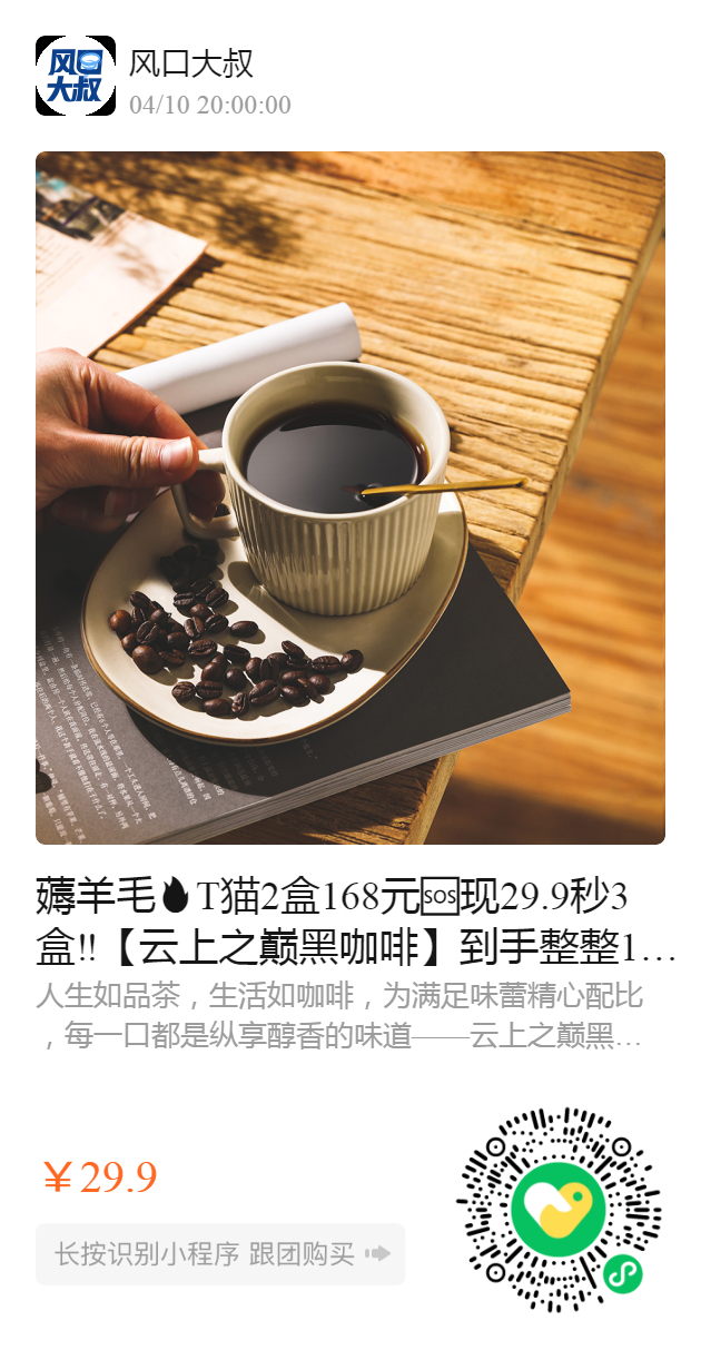 薅羊毛T猫2盒168元🆘现29.9秒3盒‼️【云上之巅黑咖啡】到手整整120小袋🔻堪比白送😲仅此一团❗️速拍!