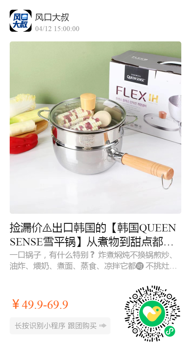 捡漏价️出口韩国的【韩国QUEENSENSE雪平锅】从煮物到甜点都可搞定,不挑炉灶❗️