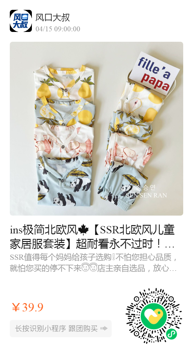 SSR北欧风儿童家居服套装